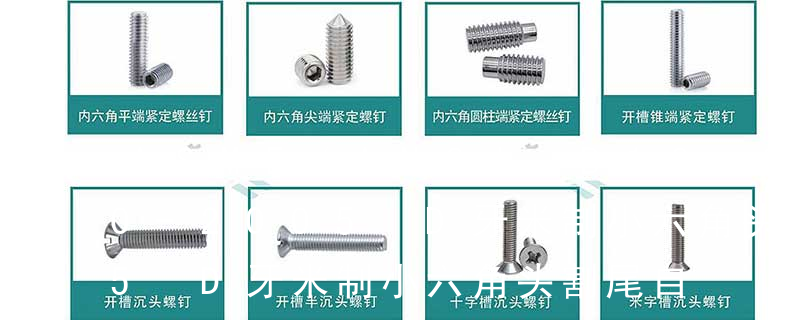 六角木牙螺丝 HEX LAG BOLTS 四角螺丝 SQUARE HEAD BOLTS T头螺丝 T HEAD BOLTS 马车螺丝 CARRIAGE BOLTS 环首螺丝 EYE BOLTS 内六角孔螺丝 HEX SOCKET CAP SCREWS 固定螺丝 SET SCREWS 螺椿栓 STUD BOLTS 螺旋椿 SCREW STUDS 轮
