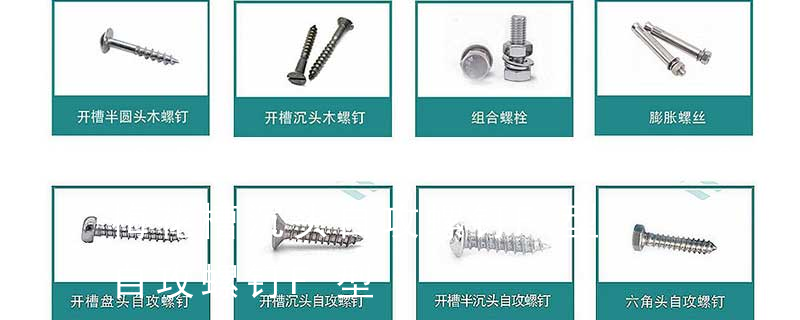 尖端机米)、内六角柱端紧定螺钉(柱端机米)、沉头内六角螺钉(平杯)、半圆头内六角螺钉(圆杯)、十字槽盘头机螺钉、十字槽沉头机螺钉、十字槽大扁头机螺钉、十字槽盘头自攻钉、十字槽沉头自攻钉、十字槽大扁头自攻钉、