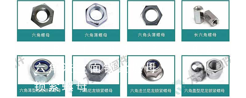 GB/T 6182-2000 2型非金属嵌件六角锁紧螺母 ISO7041:1997 GB/T 6183.1-2000 非金属嵌件六角法兰面锁紧螺母 ISO7043:1997 GB/T 6183.2-2000 非金属嵌件六角法兰面锁紧螺母细牙 ISO12125:1997 细牙非金属嵌件六角法兰面锁紧螺母、 细牙六角法兰面螺母、焊接方螺母、焊接六角螺母、扣紧螺母、嵌装圆螺母、带槽圆螺母、侧面带孔圆螺母、端面带孔圆螺母、小圆螺母、圆螺母、环形螺母、蝶形螺母等种类。