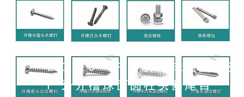(铁板牙自攻螺丝) B-2: Plastic Tapping Screw. (塑胶用,自攻螺丝) C: Wooden Screw : 木工螺丝 D: Drywall Screw :水泥墙螺丝 E: Self Drilling Screws钻尾螺丝(不锈钢钻尾螺丝,复合材料钻尾螺丝) F:膨胀螺丝,四片膨胀螺丝又 种类1)开槽普通螺钉。多用于较小零件的连接。它有盘头螺钉、圆柱头螺钉、半沉头螺钉和沉头螺钉。盘头螺钉和圆柱头螺钉的钉头强度较高,瑁在普通的部件连接上;半沉头螺钉的头部呈弧形,安装后它的顶端略外露,且美观光滑,