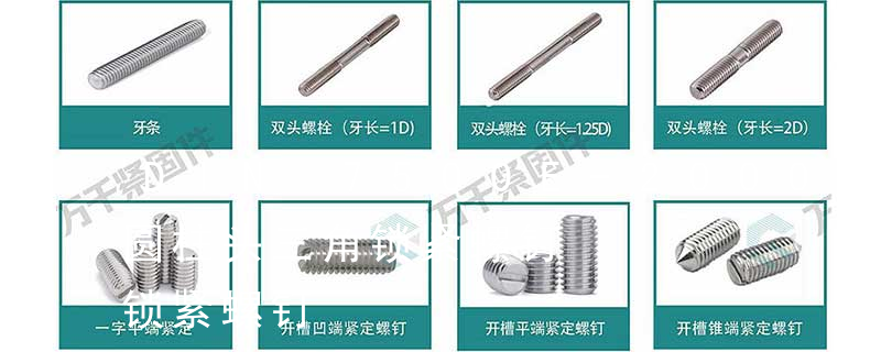 最常见的是六角头螺栓 国标GB5783 GB5782 德标Din933 Din931 (8.8级粗牙外六角螺栓)圆柱头内六角螺钉 国标GB70.1 德标Din912 还有很多像什么盘头十字螺钉 沉头十字螺钉 开槽盘头螺钉 开槽沉头螺钉等等很多种。